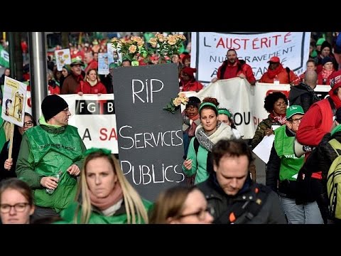 Thousands of people who work in Belgium's health and welfare sector have taken to the streets to protest against government plans for austerity measures.